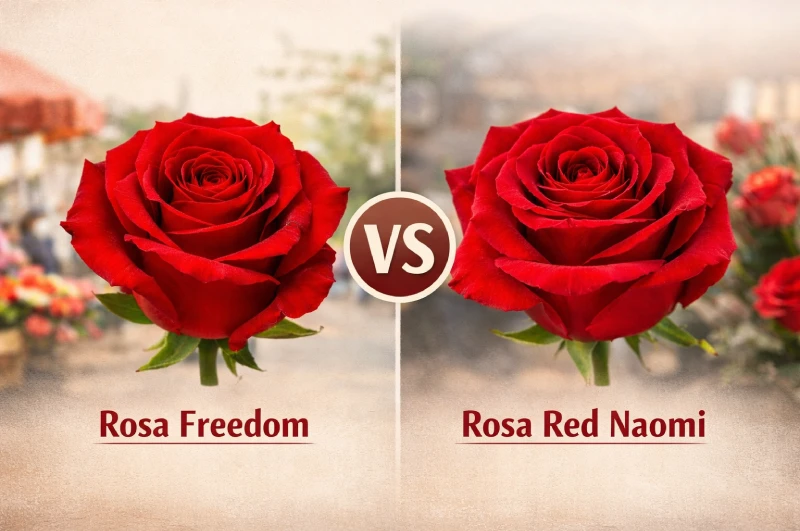 Las dos rosas rojas más conocidas son Freedom y Red Naomi. Ambas son bonitas, pero no se comportan igual en un contexto como el del 23 de abril.