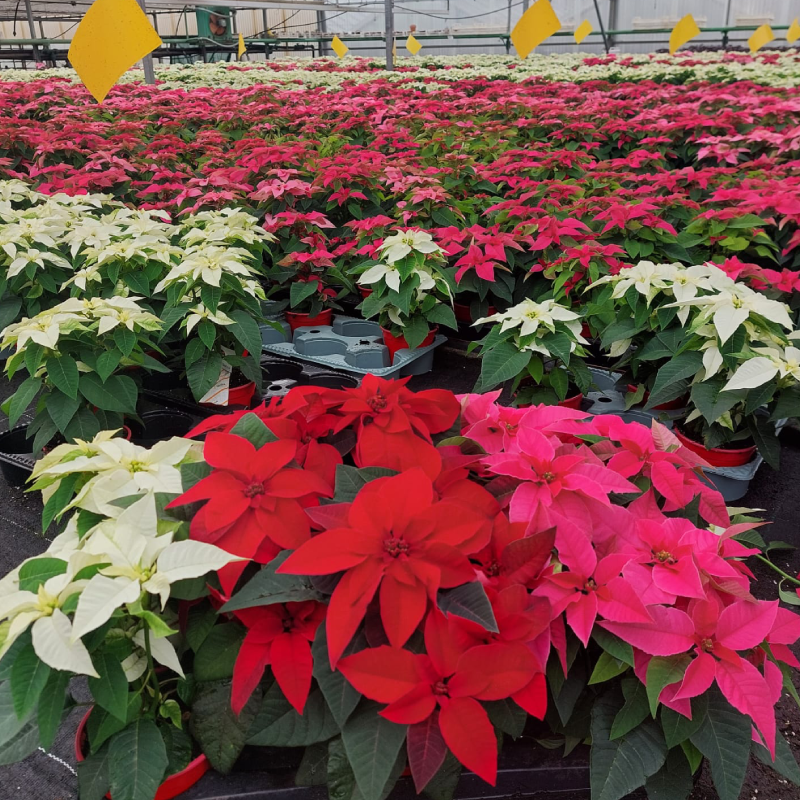 Al igual que nuestras rosas, vendemos Poinsettias de primera calidad y de proximidad.