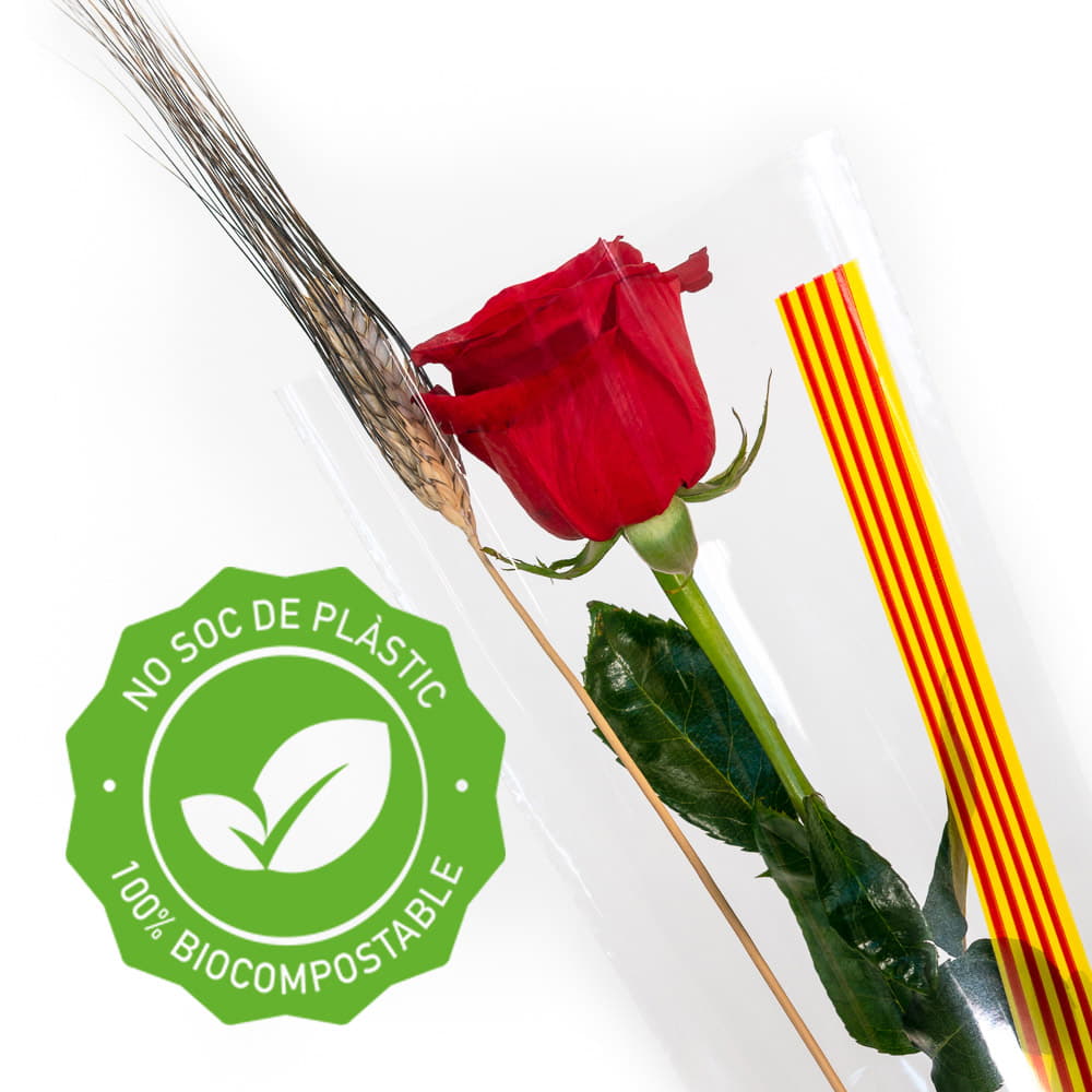 La presentación juega un papel clave en Sant Jordi. Las Rosas de Sant Jordi montadas destacan por su aspecto ordenado, limpio y uniforme, lo que ayuda a transmitir calidad y confianza desde el primer vistazo.
